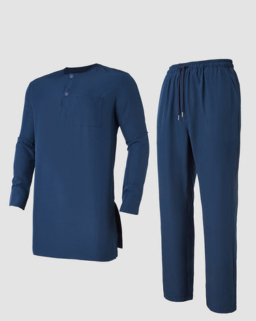 2. Elegant Style: Drawstring trousers provide an adjustable, relaxed fit, complementing the ensemble’s sophistication. Pullover outer robe slips on effortlessly, enhancing the regal aesthetic.
