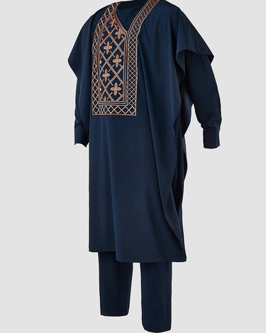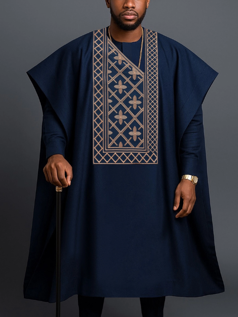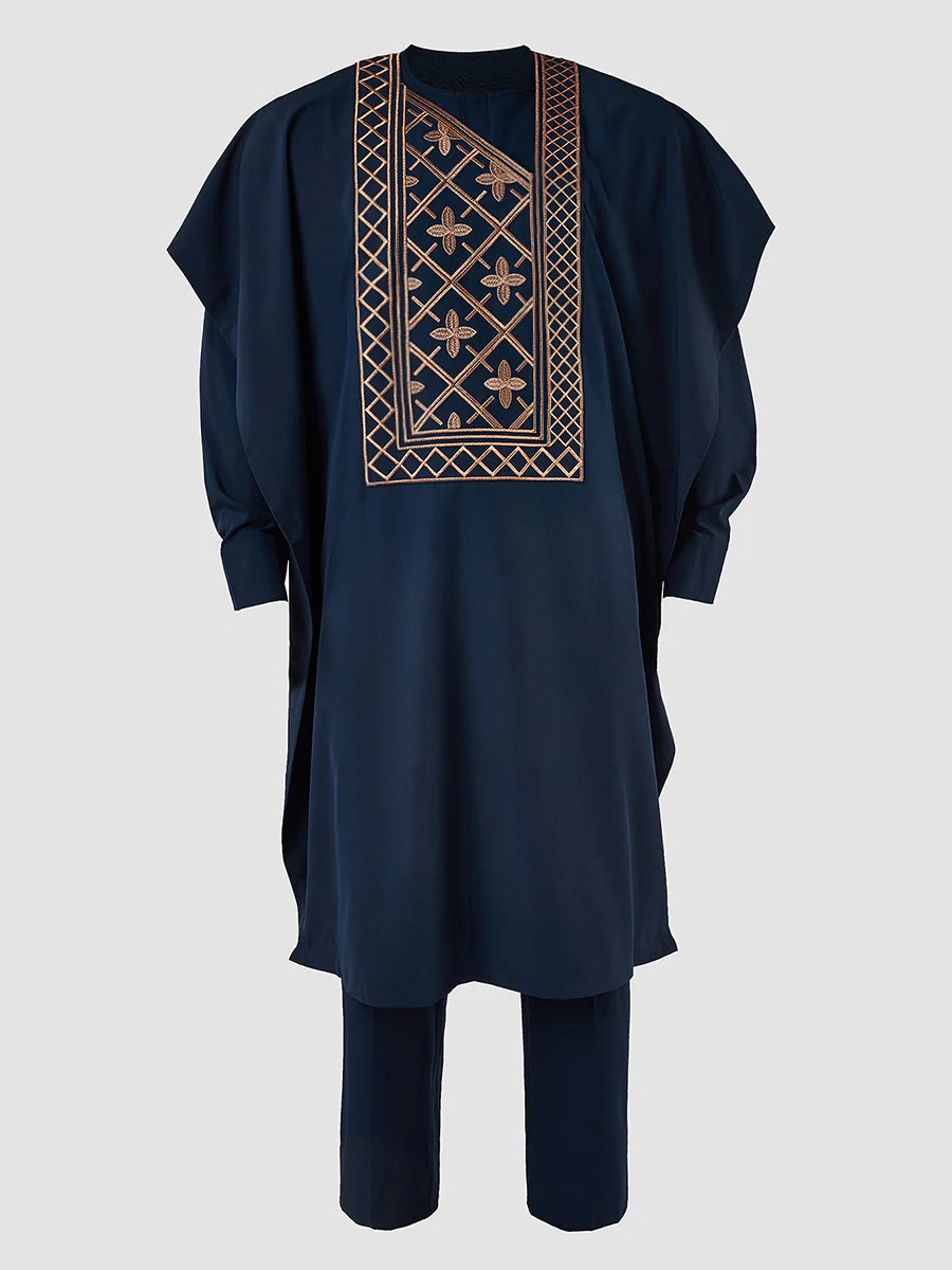 Embrace your heritage with this stunning three-piece African Agbada set, where tradition meets bold style. Each piece features intricate embroidered detailing that tells a story of craftsmanship and cultural pride. The flowing silhouette offers comfort without compromising on presence—perfect for celebrations, special occasions, or whenever you want to make a statement.