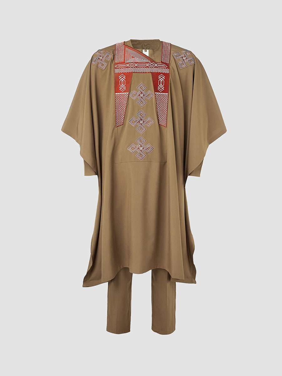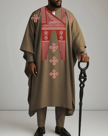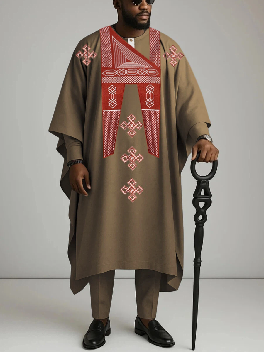 TACOHEAL African Embroidery Agbada 3 Pieces Set For Men