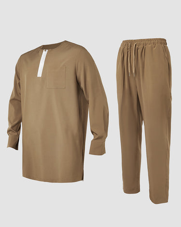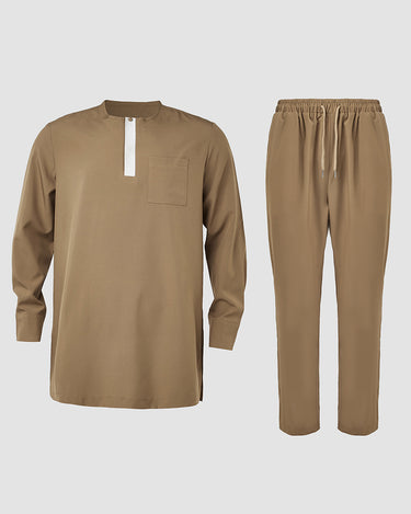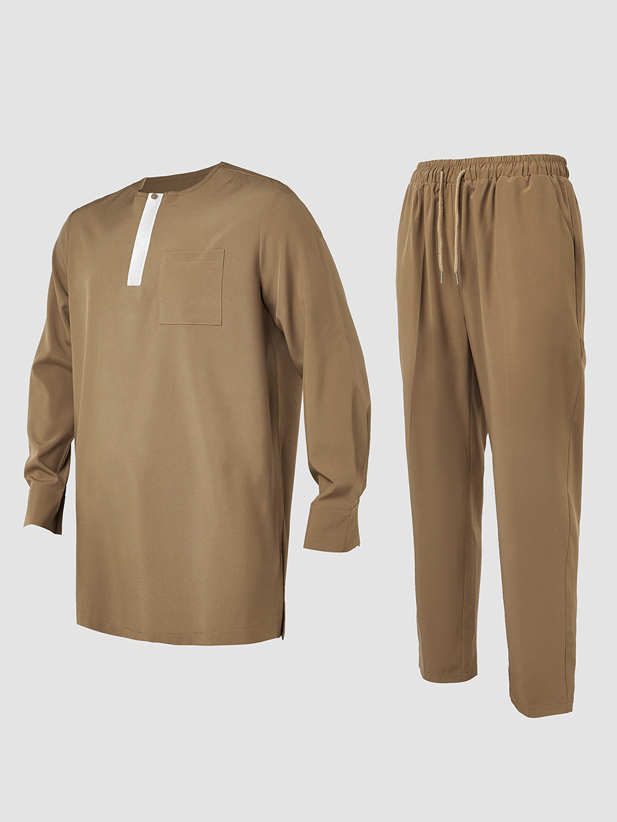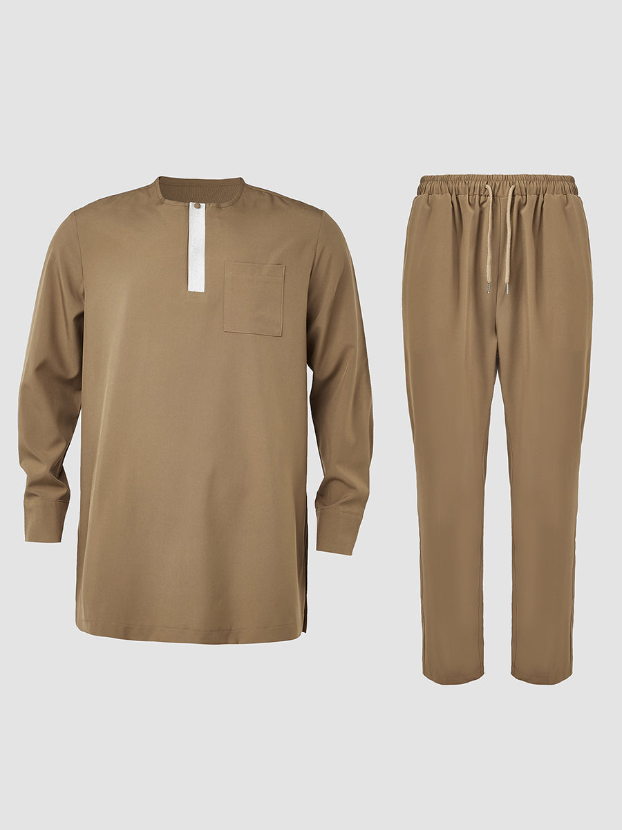 2. Elegant Style: Drawstring trousers provide an adjustable, relaxed fit, complementing the ensemble’s sophistication. Pullover outer robe slips on effortlessly, enhancing the regal aesthetic.