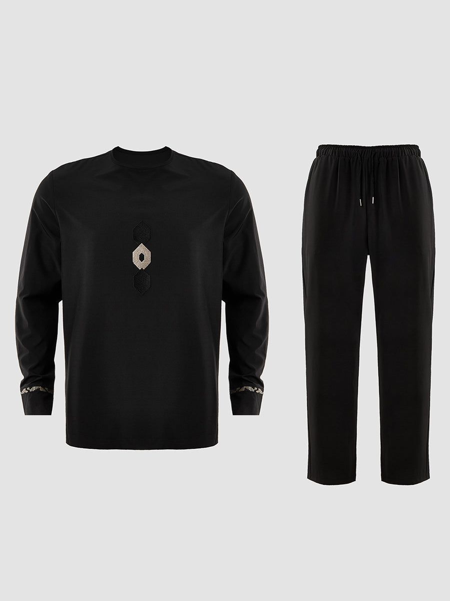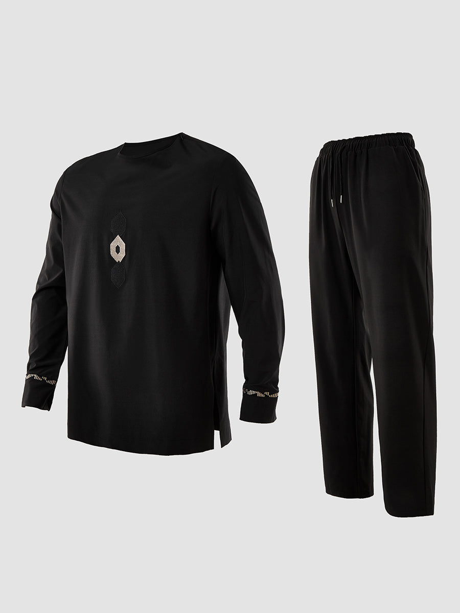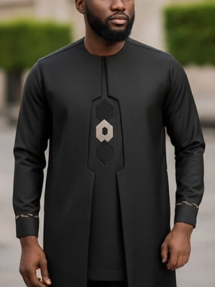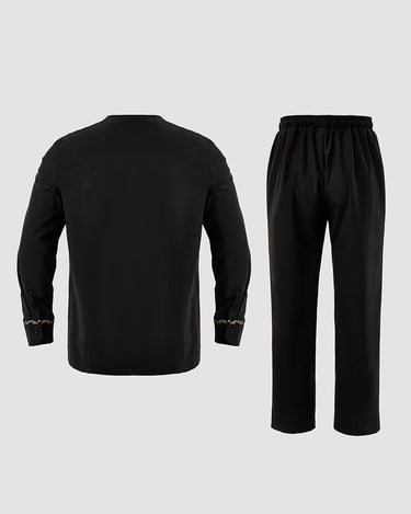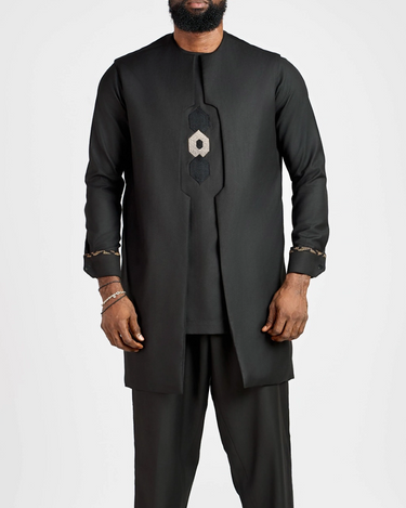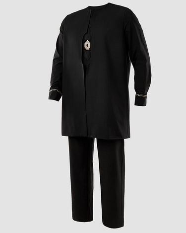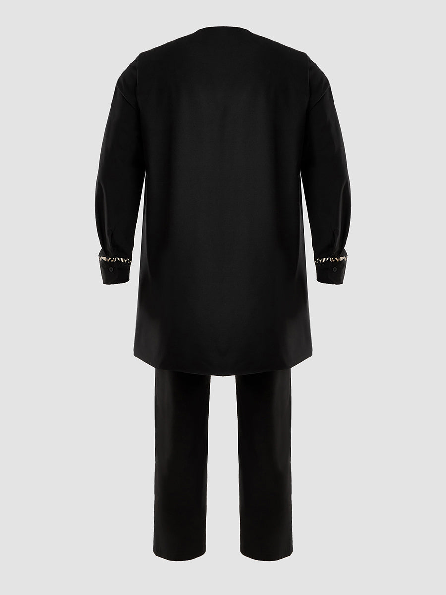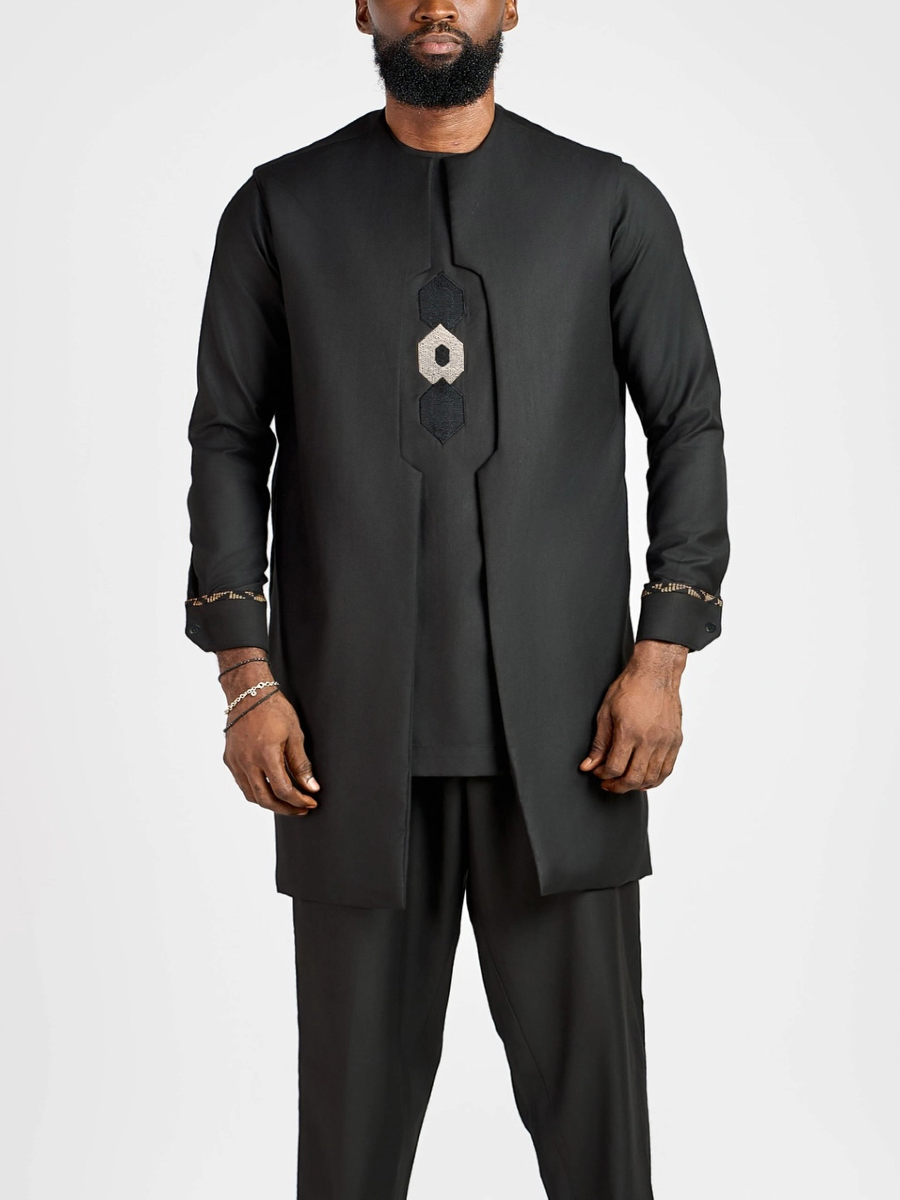 2. Elegant Style: Drawstring trousers provide an adjustable, relaxed fit, complementing the ensemble’s sophistication. Vest slips on effortlessly, enhancing the regal aesthetic.