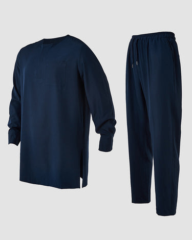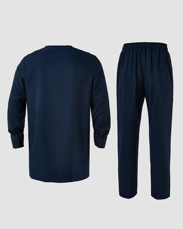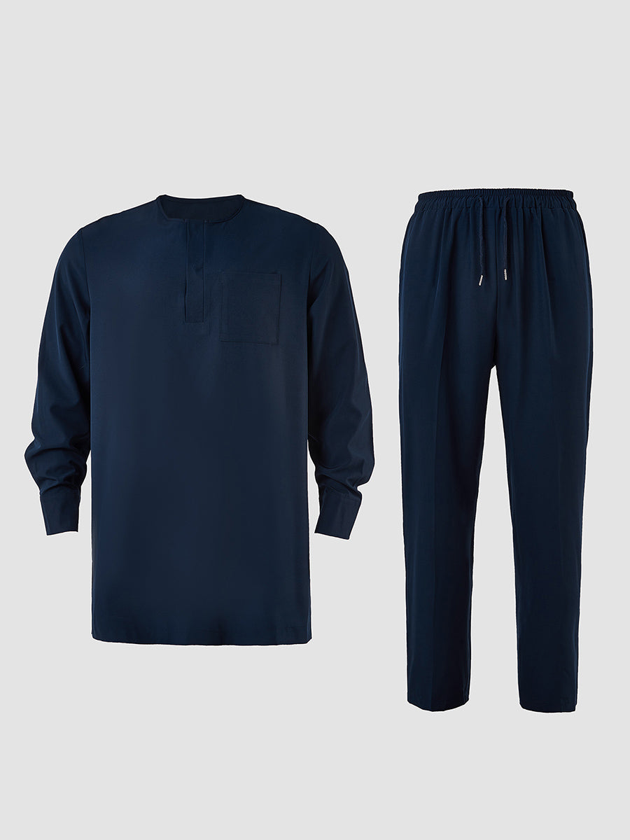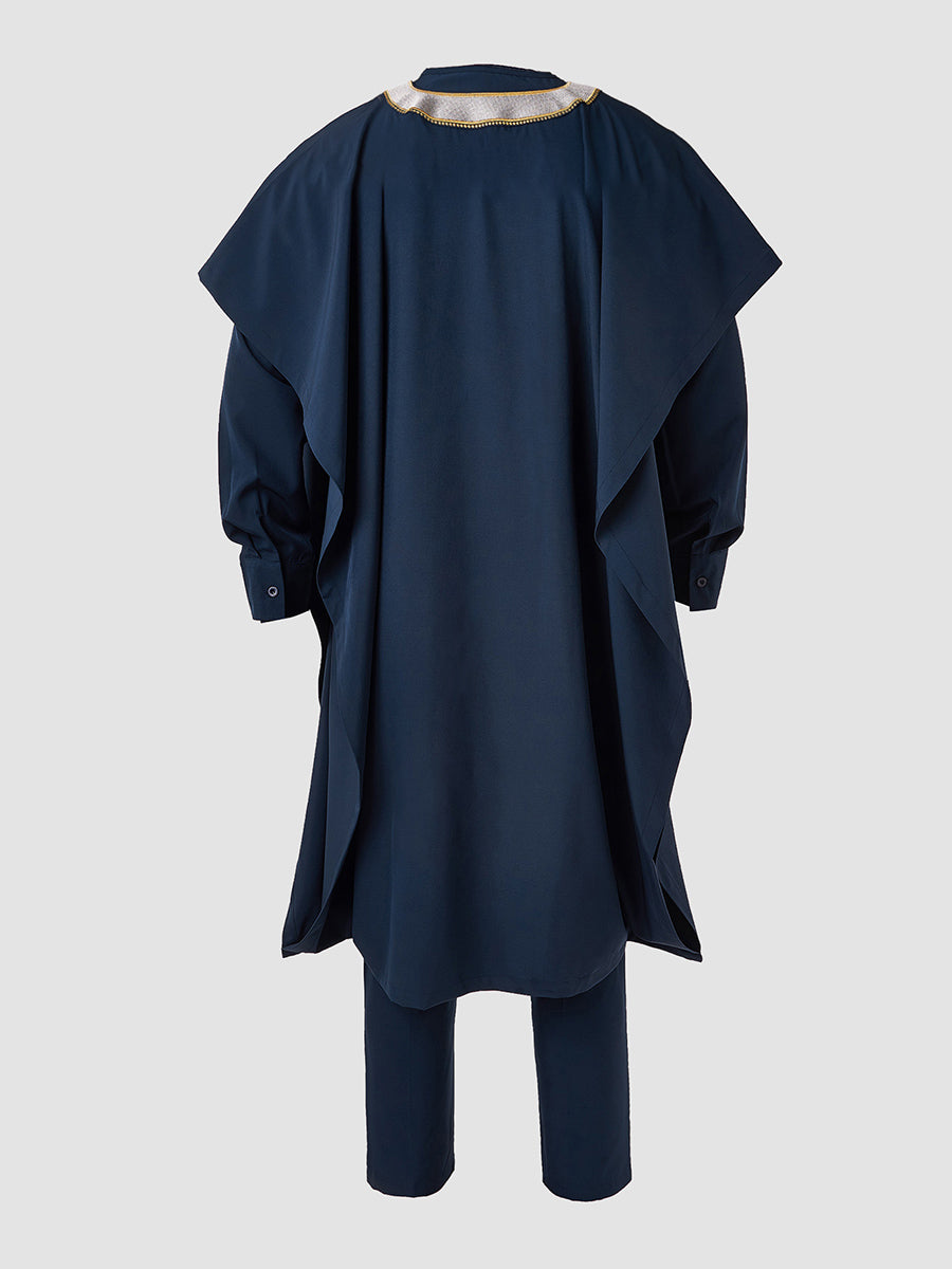 2. Elegant Style: Drawstring trousers provide an adjustable, relaxed fit, complementing the ensemble’s sophistication. Pullover outer robe slips on effortlessly, enhancing the regal aesthetic.