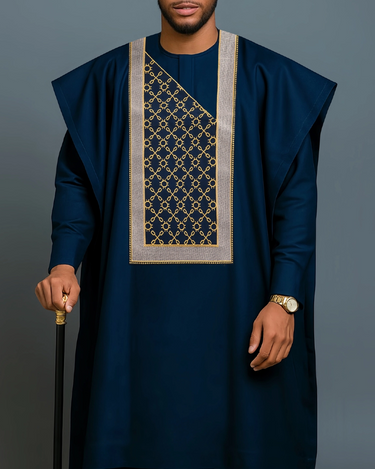 Step into timeless elegance with this striking three-piece agbada set, where traditional craftsmanship meets modern flair. The flowing silhouette offers comfort without compromising on style, while the coordinated ensemble takes the guesswork out of dressing sharp. Whether you're honoring heritage or turning heads at your next event, this set delivers authentic African fashion with personality to spare.