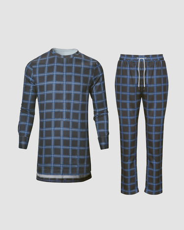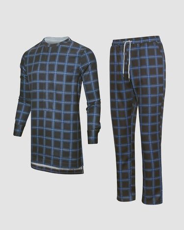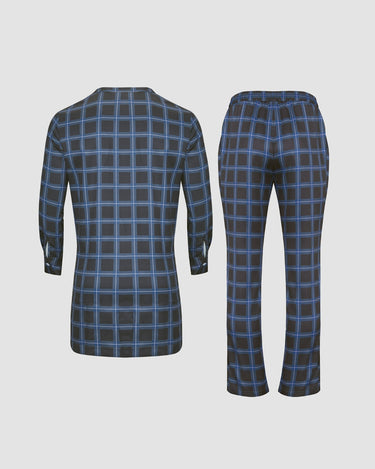TACOHEAL Plus Size Black Plaid Printed Long Sleeve Men's Set