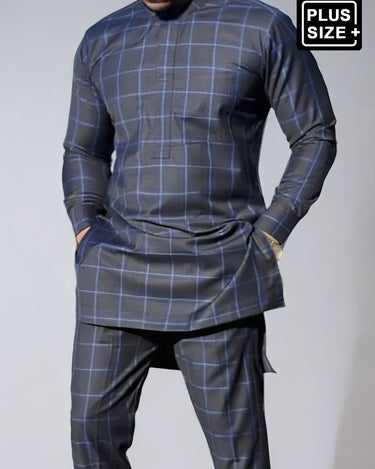 Stay stylish and comfortable in our Plus Size Black Plaid Printed Long Sleeve Men's Set. The classic plaid print adds a touch of sophistication, while the long sleeves provide warmth for any occasion. Perfect for the fashionable man who doesn't want to sacrifice comfort.