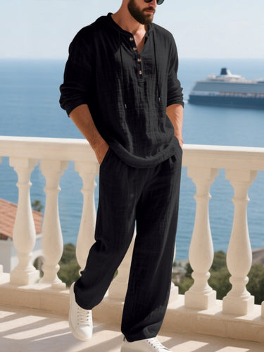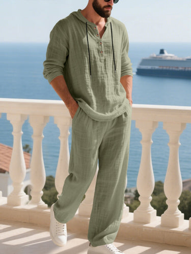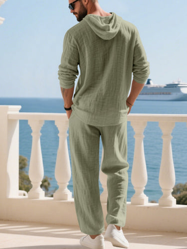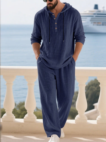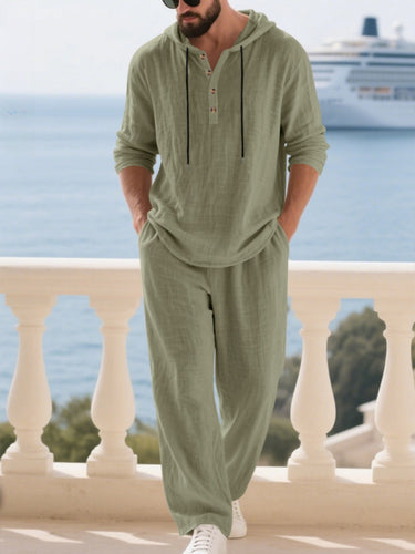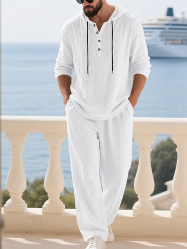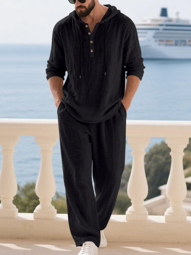 TACOHEAL Hooded Button Casual Men's Pants Set