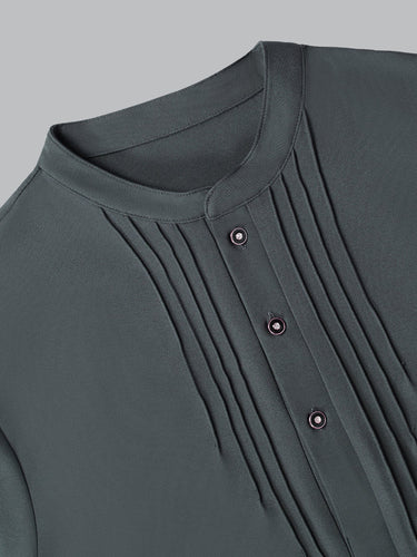 2. Elegant Style: Band collar shirt with long sleeves for a classic yet stylish appeal.