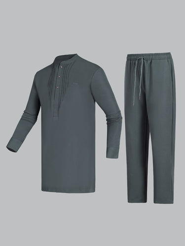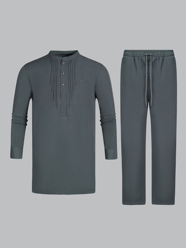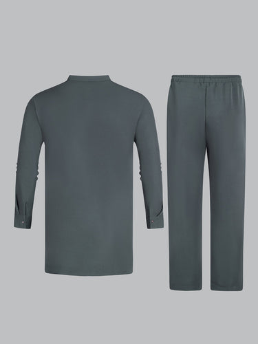 TACOHEAL Band Collar Button Blue Embroidered Men's Set