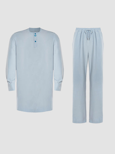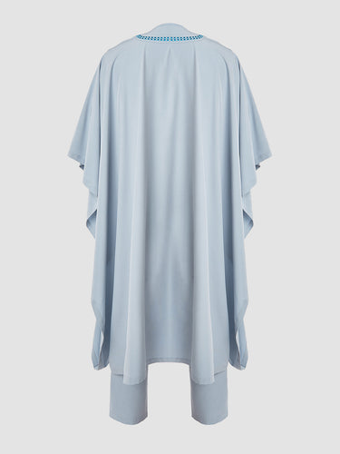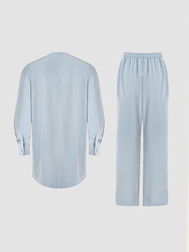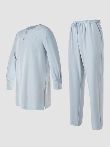 2. Elegant Style: Drawstring trousers provide an adjustable, relaxed fit, complementing the ensemble’s sophistication. Pullover outer robe slips on effortlessly, enhancing the regal aesthetic.