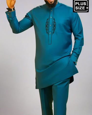 Step out in style with our Plus Size Band Collar Blue Embroidered Men's Set. This unique set features a band collar and intricate blue embroidery, perfect for those looking to add some boldness to their wardrobe. With comfortable sizing options, you'll feel confident and fashionable in no time.