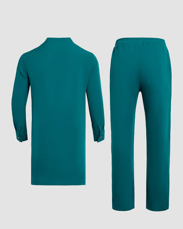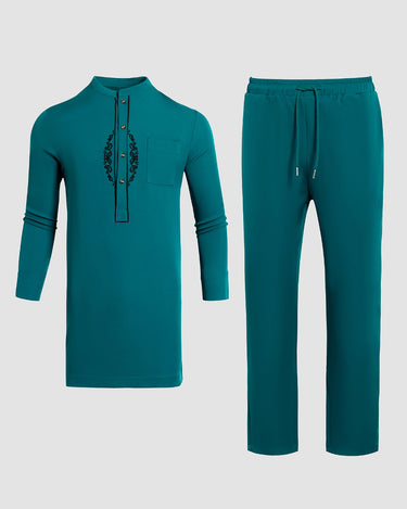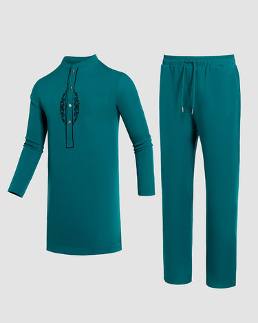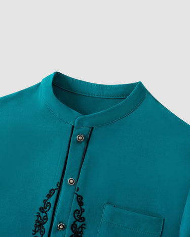 TACOHEAL Plus Size Band Collar Blue Embroidered Men's Set