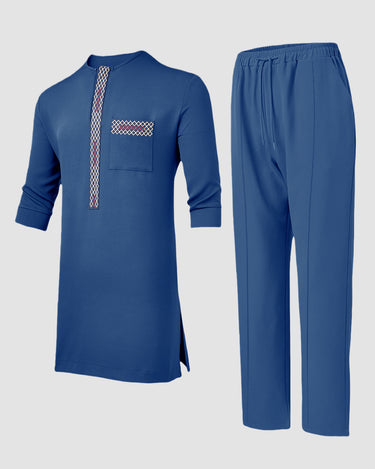 TACOHEAL Plus Size Short Sleeve Embroidered Men's Set