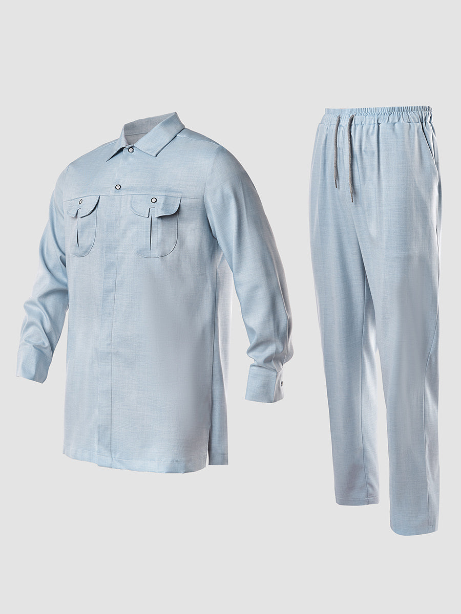 Elevate your casual wardrobe with this sharp long sleeve button-down set. Crafted in solid, versatile colors, it's the perfect go-to for laid-back days that still demand style. The classic fit and quality construction mean you'll reach for it again and again. Whether you're heading out for brunch or keeping it chill at home, this set delivers comfort without compromising on looks. Simple, timeless, and always in rotation.