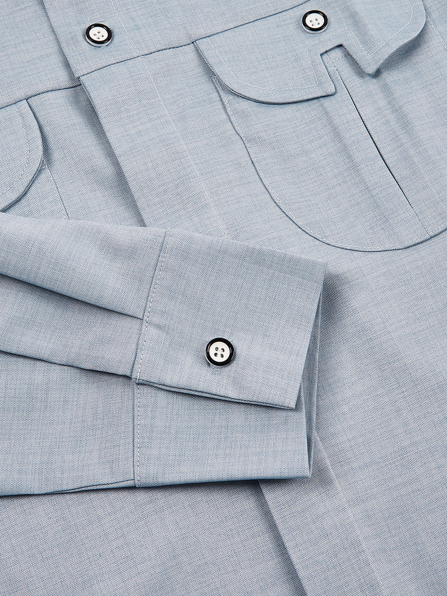 TACOHEAL New Solid Long Sleeve Button Down Men's Set