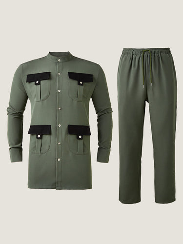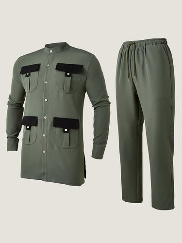 TACOHEAL Colorblock Long Sleeve Button Down Men's Set