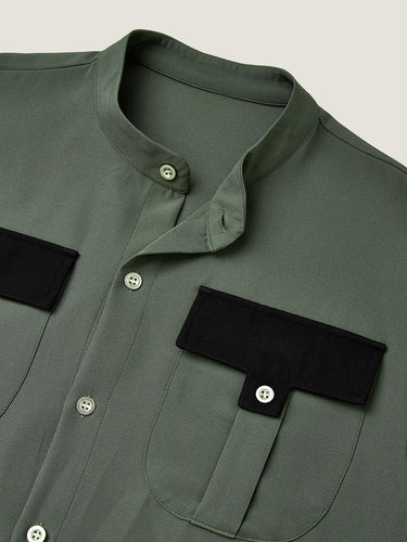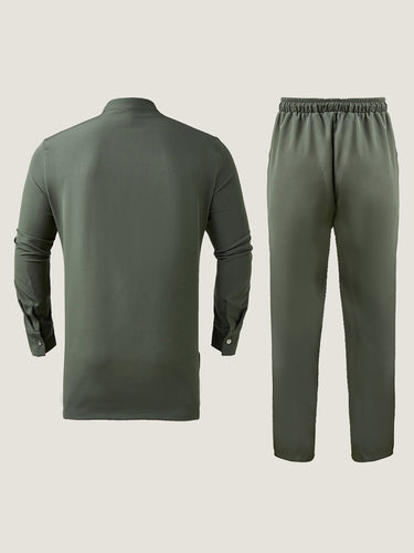 2. Elegant Style: Band collar shirt with long sleeves for a classic yet stylish appeal.