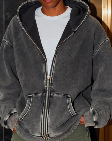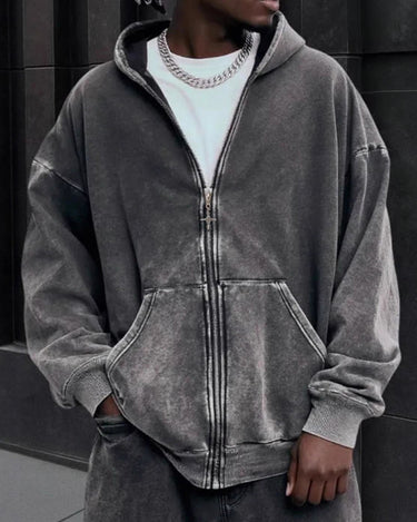 TACOHEAL Long Sleeve Zip Up Grey Men's Hoodie