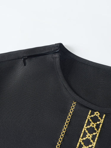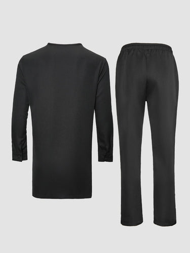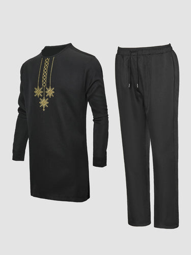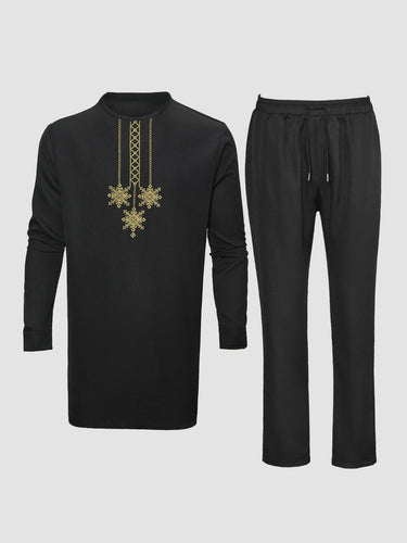 TACOHEAL Black Snowflake Embroidered Men's Casual Set
