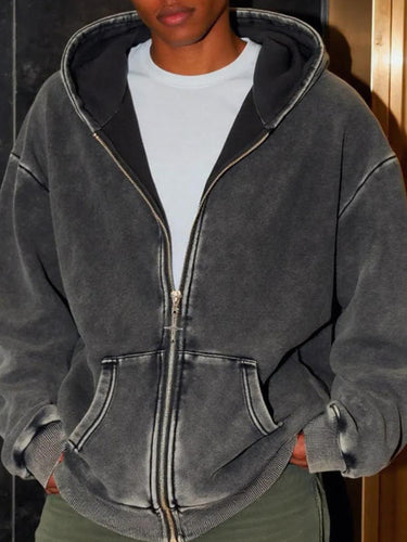 TACOHEAL Long Sleeve Zip Up Grey Men's Hoodie
