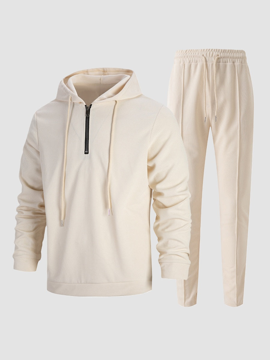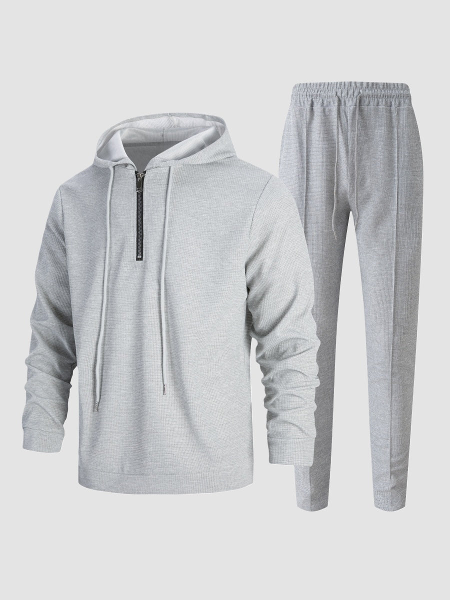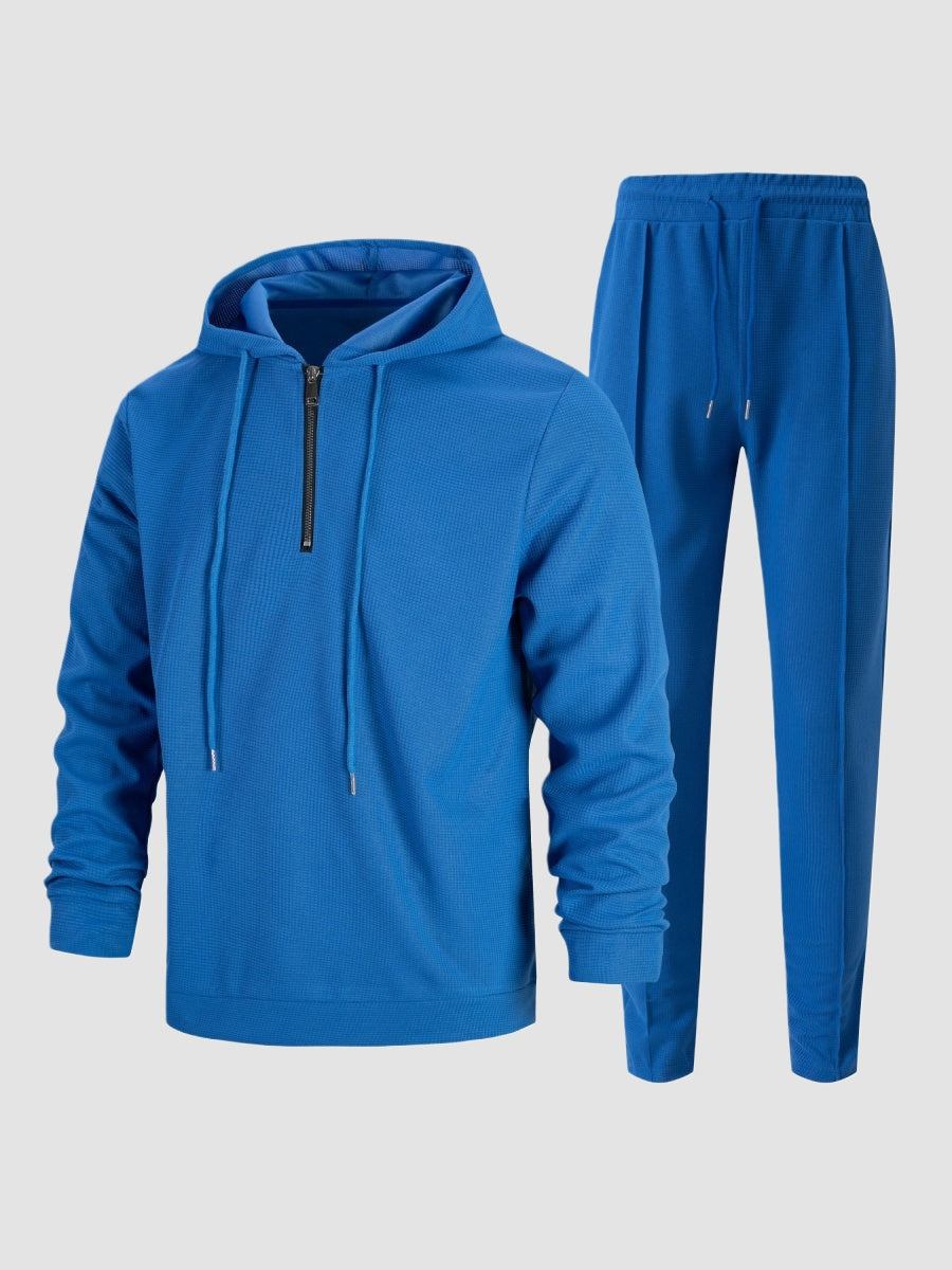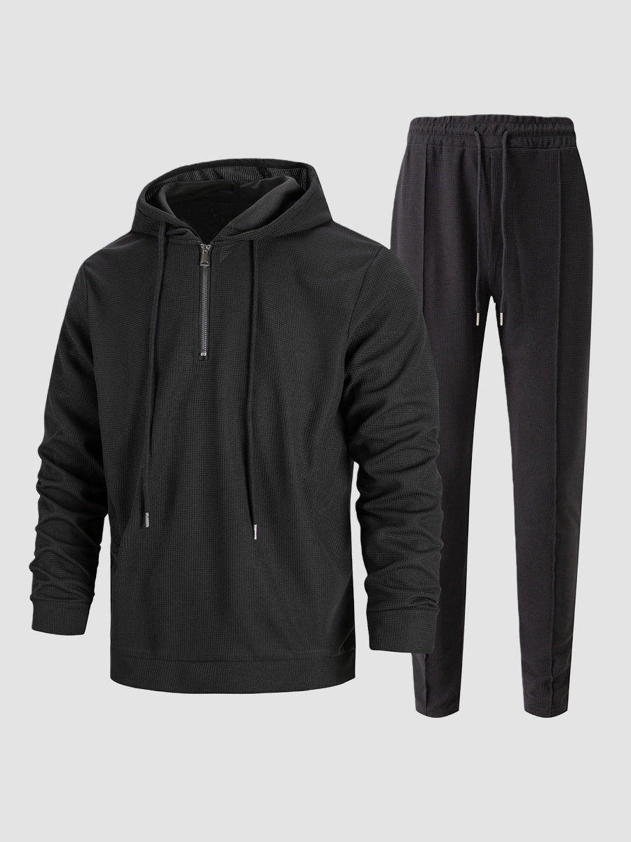 • Closure Type: Drawstring on Trousers, Half-Zip Front