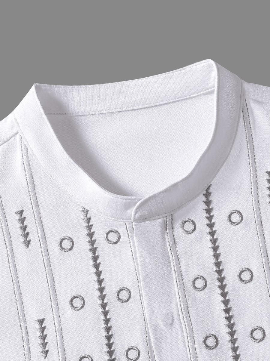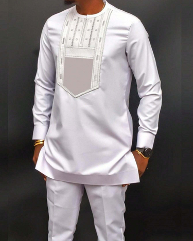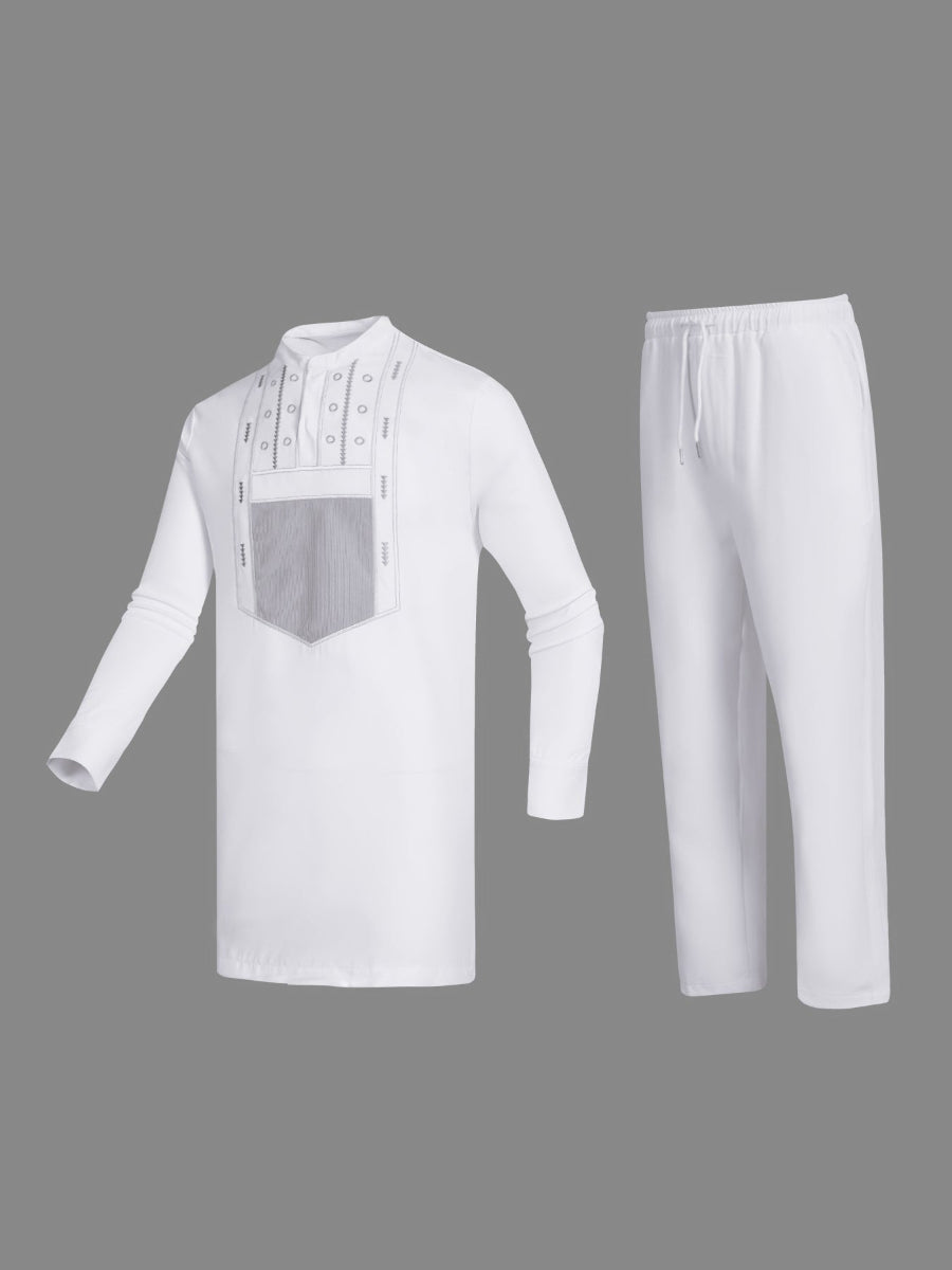 TACOHEAL Heavy Embroidered Long Sleeve White Party Men's Set