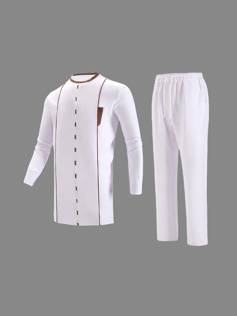 TACOHEAL New White Embroidered Men's Pants Set