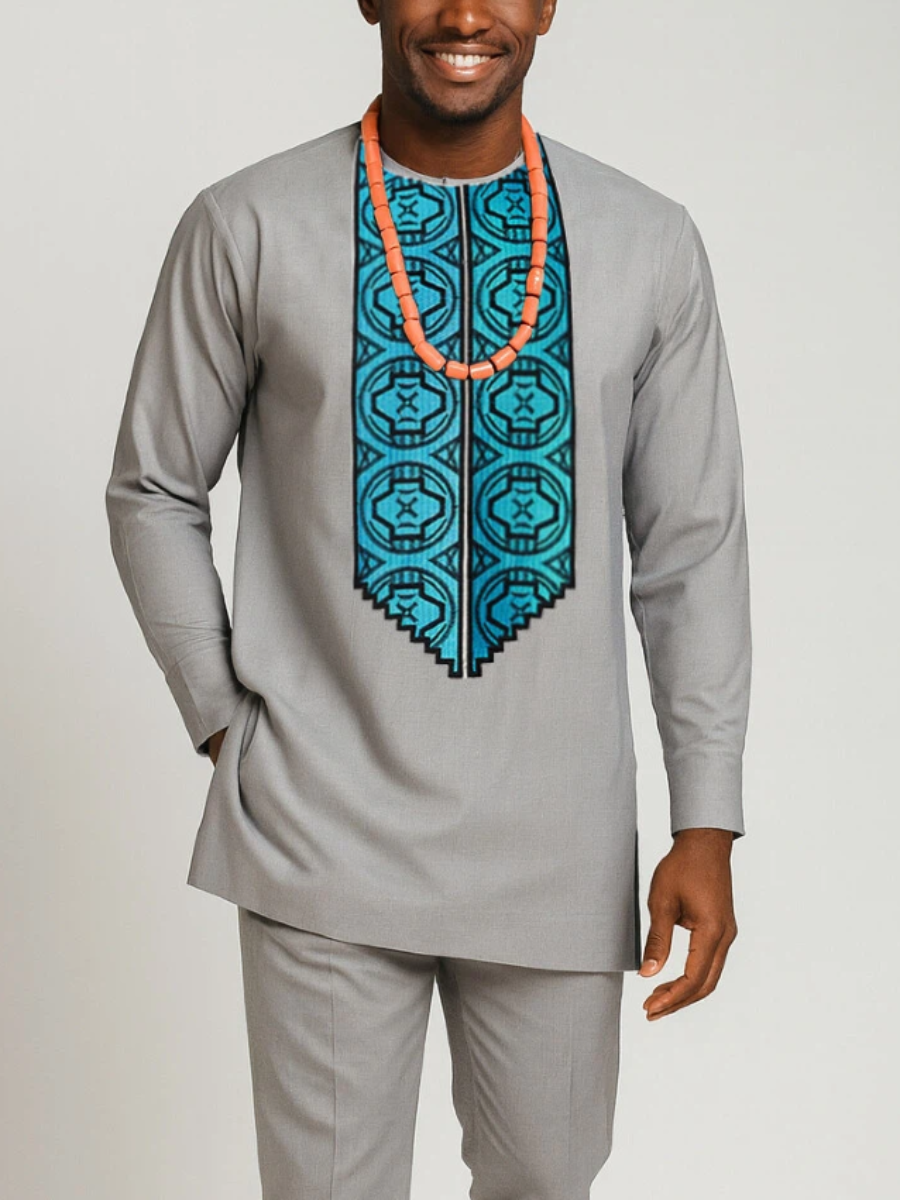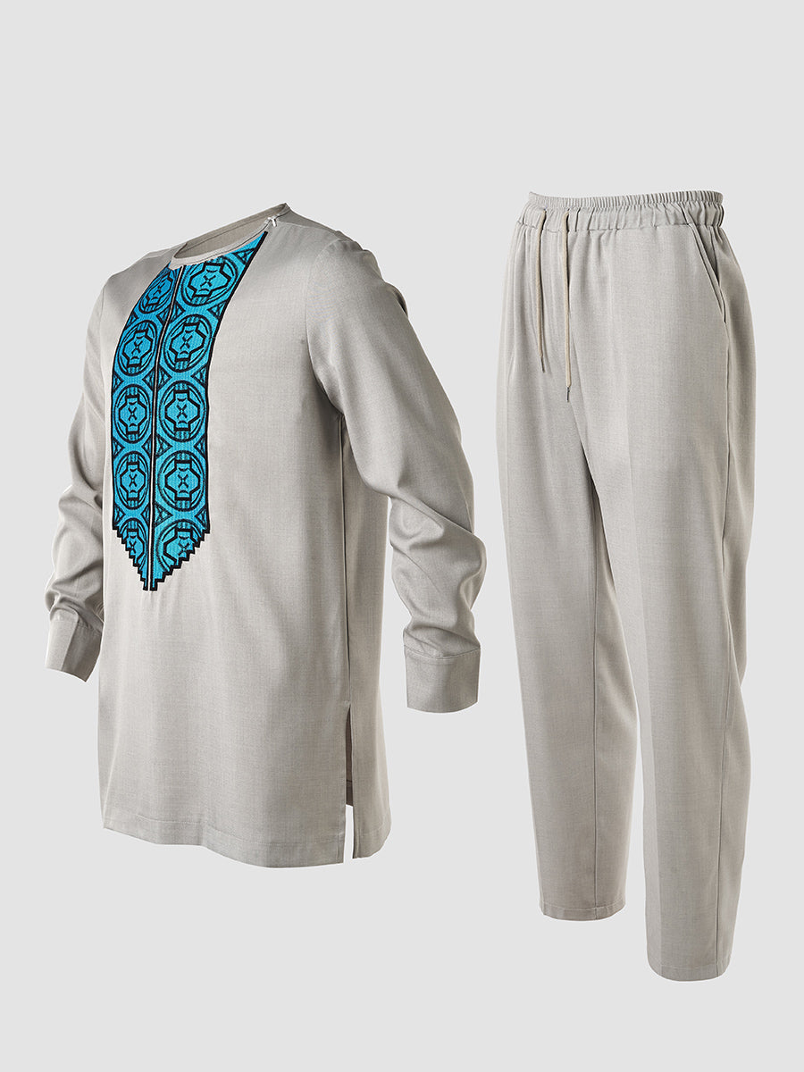 TACOHEAL Ethinc Embroidered Long Sleeve Men's Pants Set
