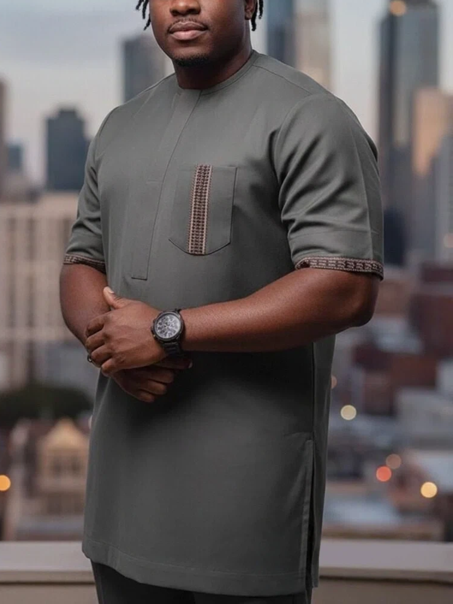 2. Elegant Style: Round neck shirt with short sleeves for a classic yet stylish appeal.