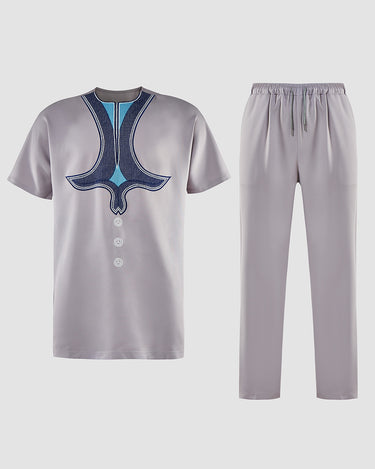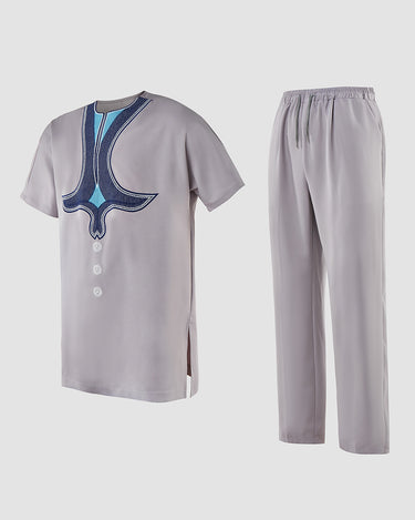 TACOHEAL Short Sleeve Ethnic Exquisite Embroidered Men's Set