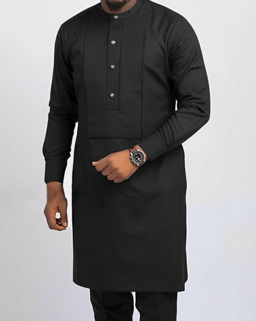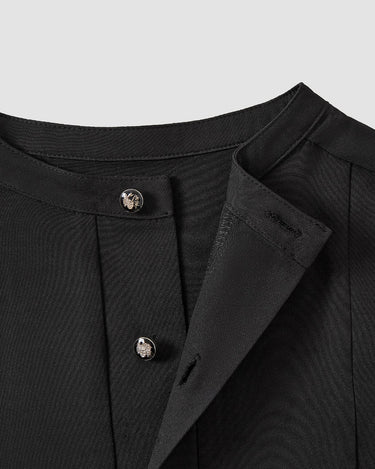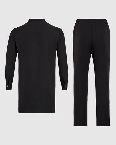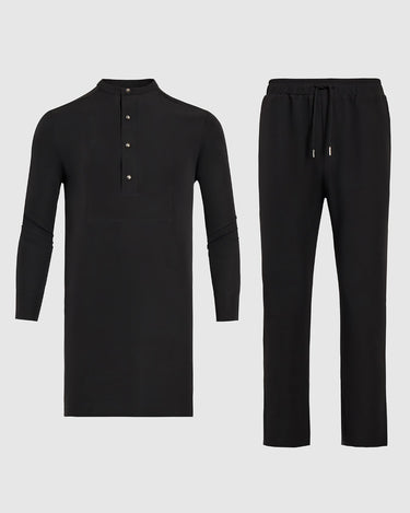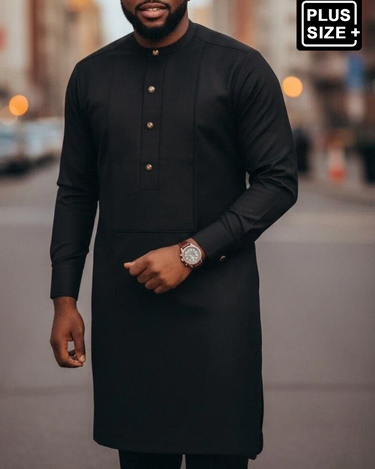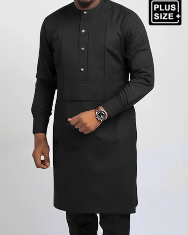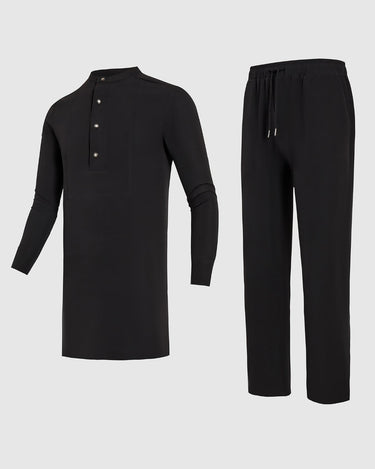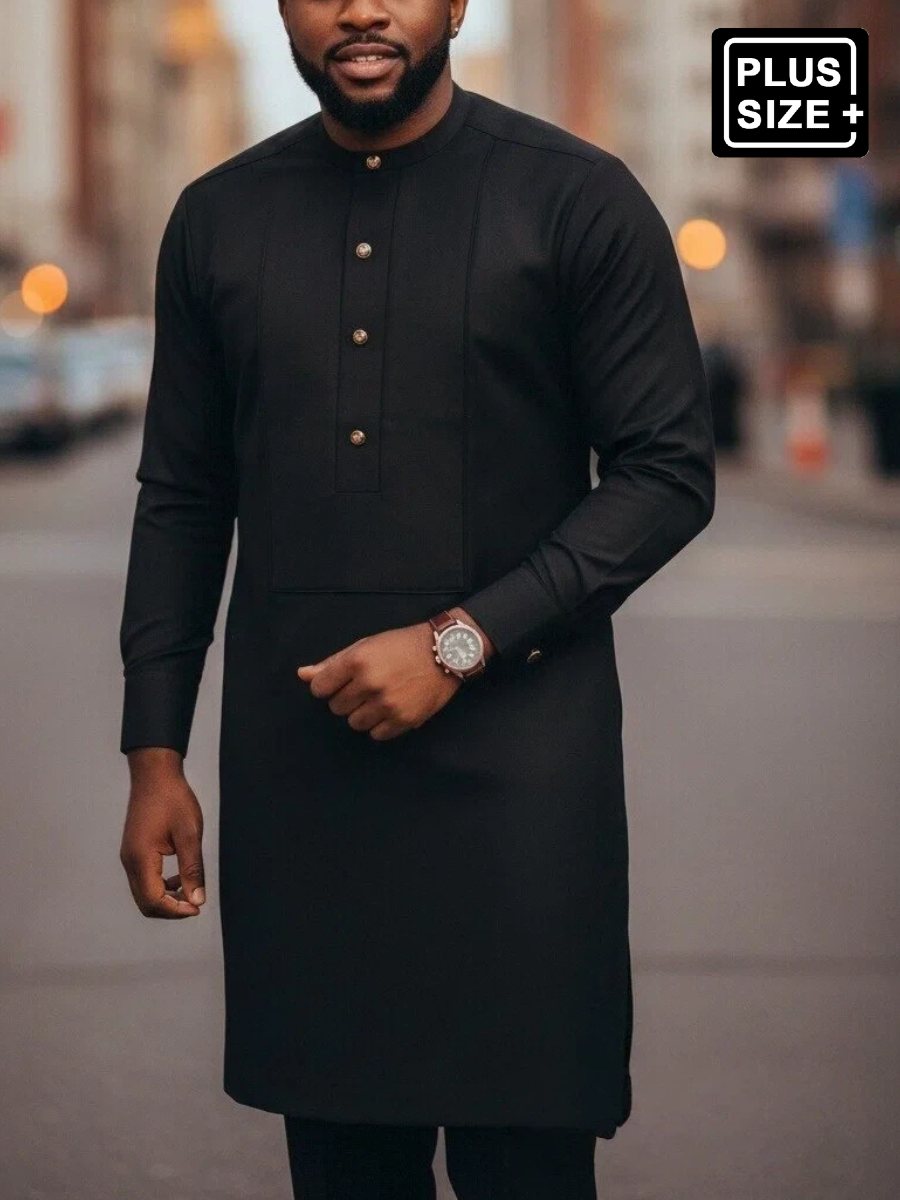 TACOHEAL Plus Size Black Plain Button Long Sleeve Men's Set