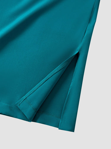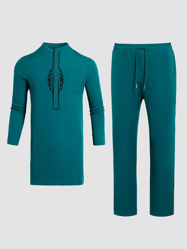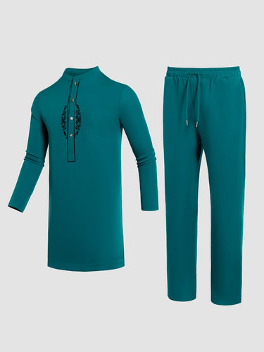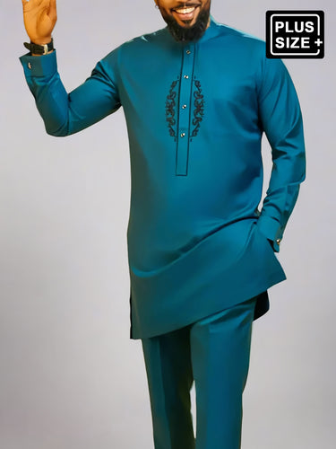 TACOHEAL Plus Size Band Collar Blue Embroidered Men's Set