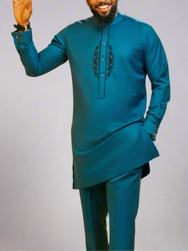 Step out in style with our Plus Size Band Collar Blue Embroidered Men's Set. This unique set features a band collar and intricate blue embroidery, perfect for those looking to add some boldness to their wardrobe. With comfortable sizing options, you'll feel confident and fashionable in no time.