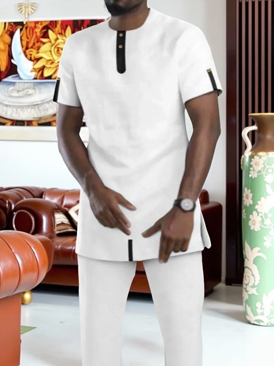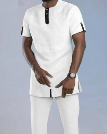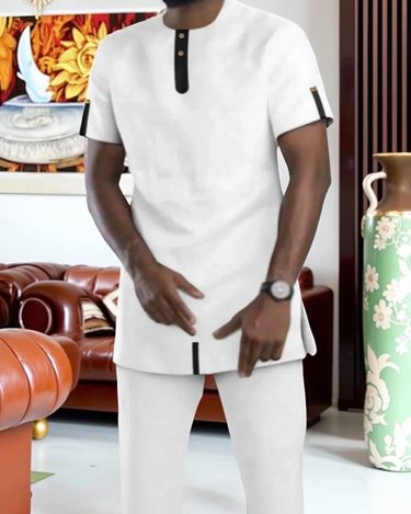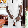 TACOHEAL African Casual White Short Sleeve Men's Set