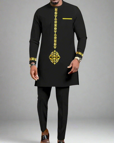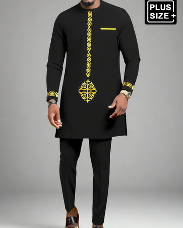 Upgrade your style game with our Plus Size Digital Printed Black Long Sleeve Men's Set. This set features a unique digital print on a classic black base, making it perfect for any occasion. Stay comfortable with the long sleeves and enjoy the perfect fit with the plus size option.