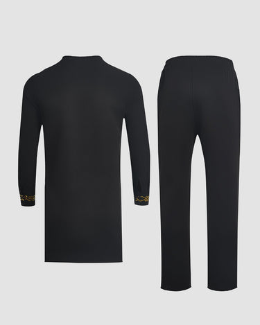 TACOHEAL Plus Size Digital Printed Black Long Sleeve Men's Set