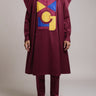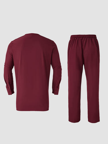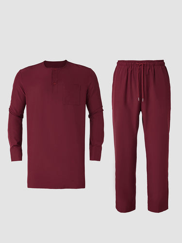2. Elegant Style: Drawstring trousers provide an adjustable, relaxed fit, complementing the ensemble’s sophistication. Pullover outer robe slips on effortlessly, enhancing the regal aesthetic.