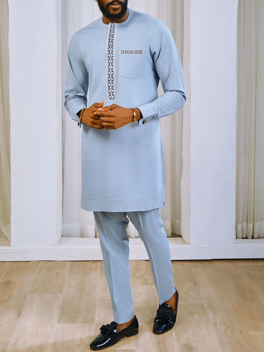 TACOHEAL Traditional Embroidered Men's Pants Set