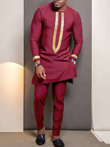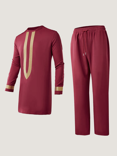 TACOHEAL Wine Embroidered Sleeve Shirt With Pants
