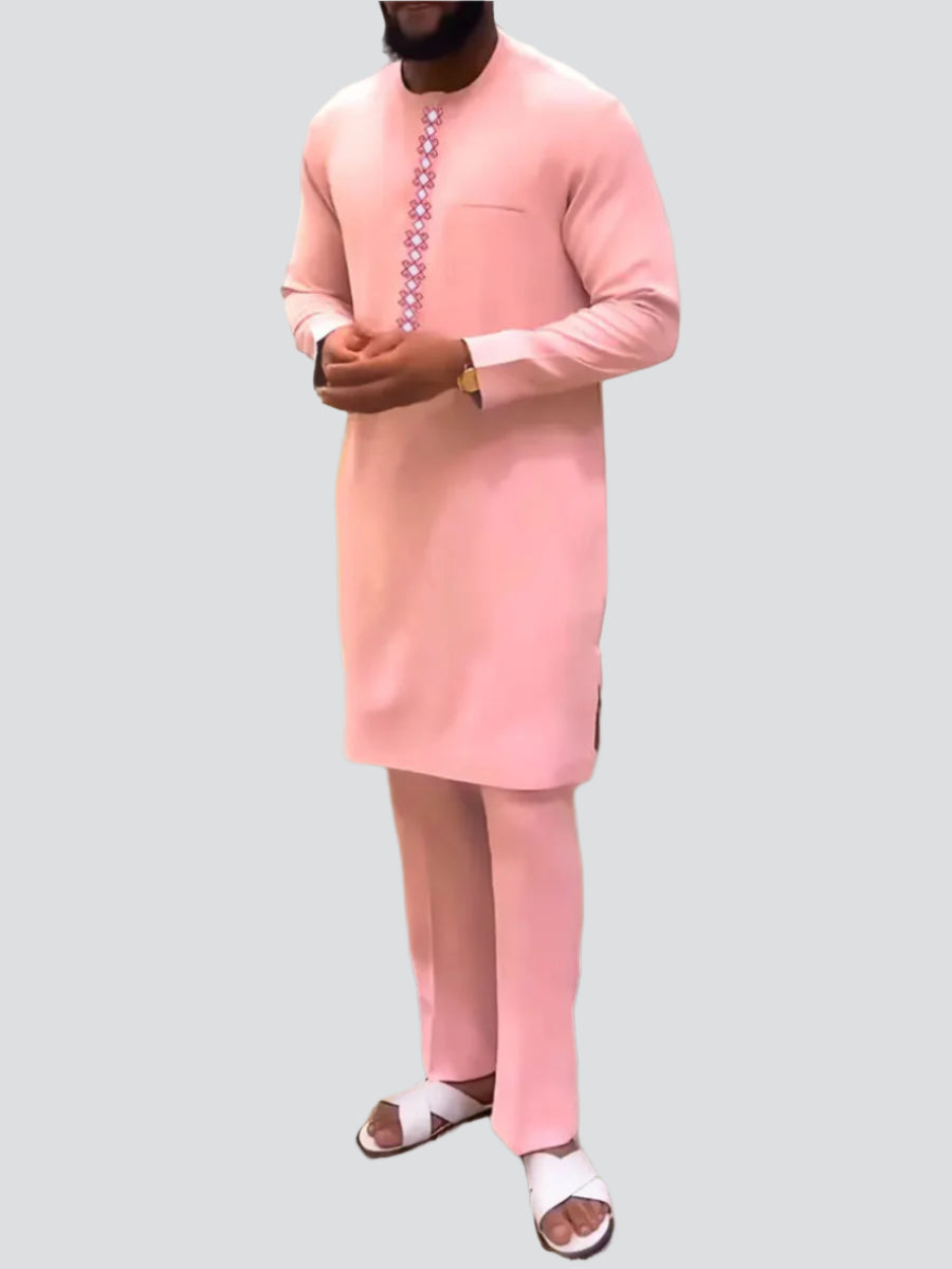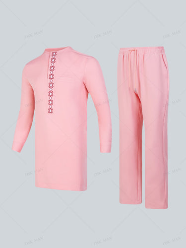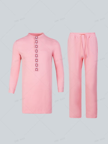 TACOHEAL African Ethnic Pink Embroidered Men's Set