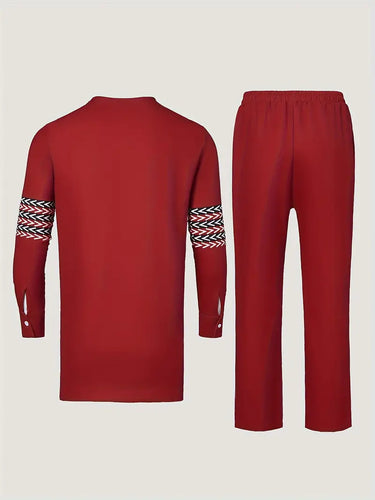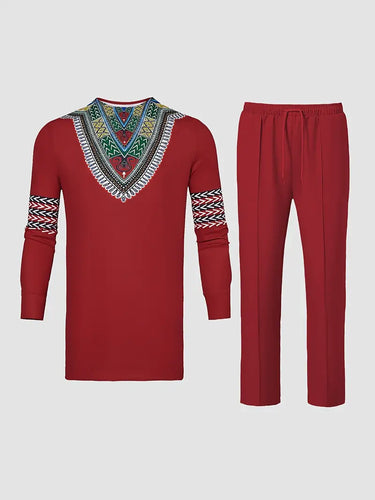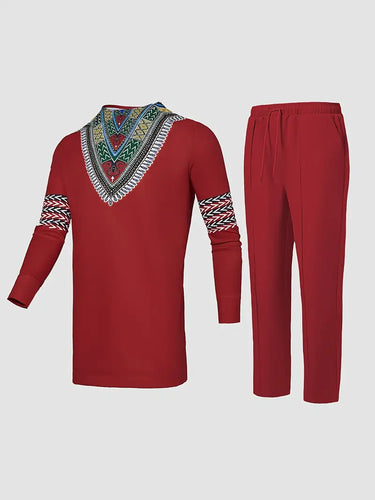 TACOHEAL Dashiki African Traditional Ethnic Printed Men's Red Set