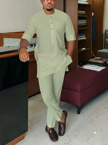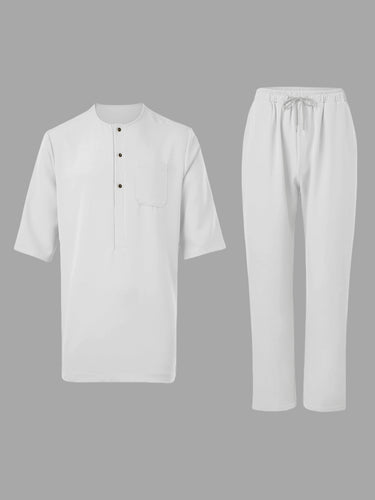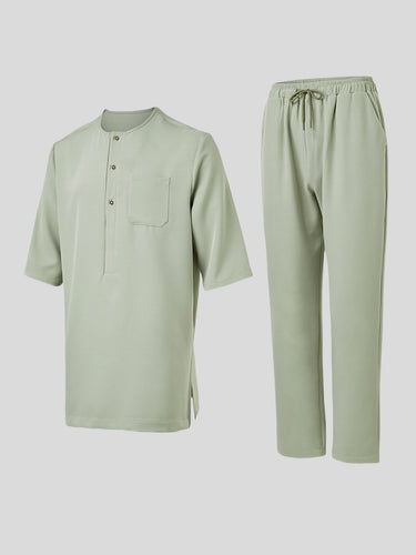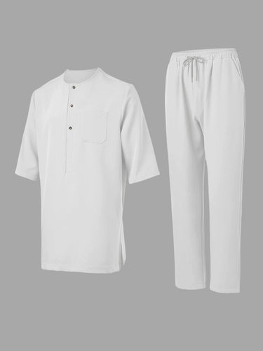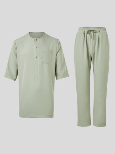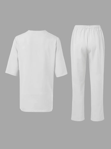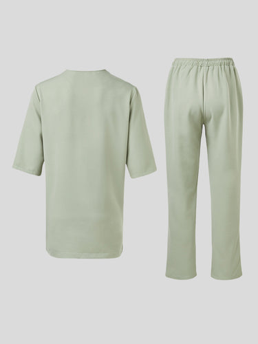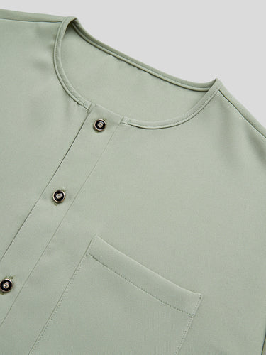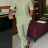 TACOHEAL Solid Metal Button Short Sleeve Pants Set