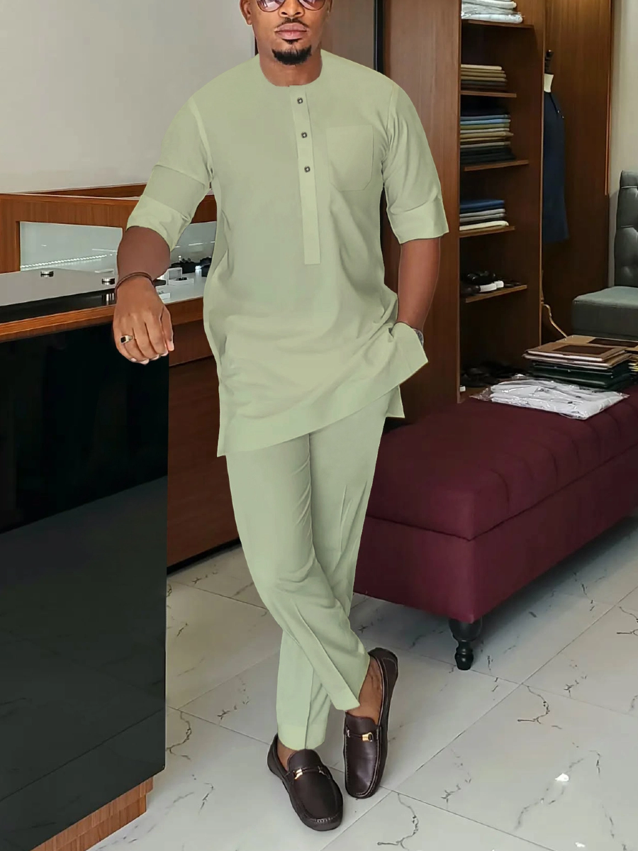 2. Elegant Style: Round neck shirt with short sleeves for a classic yet stylish appeal.