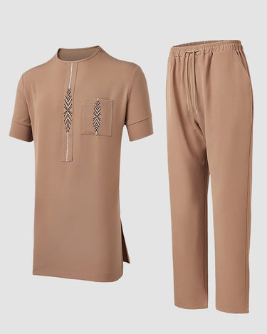 TACOHEAL Plus Size Embroidered Short Sleeve Men's Set
