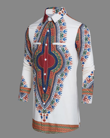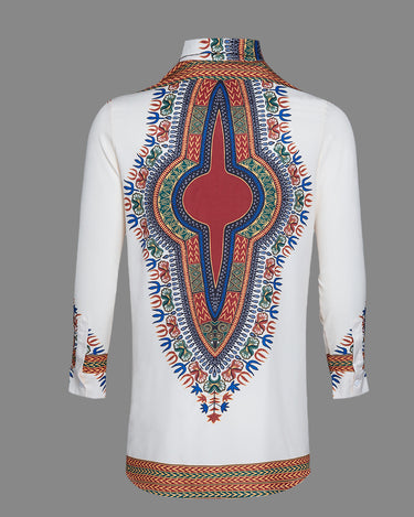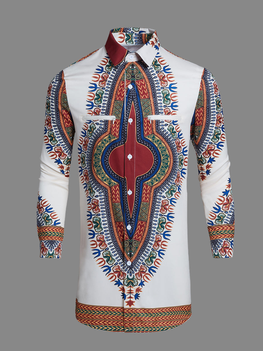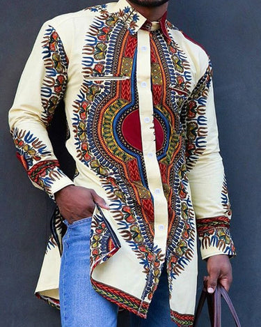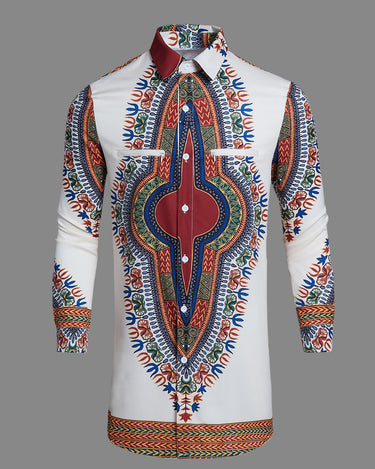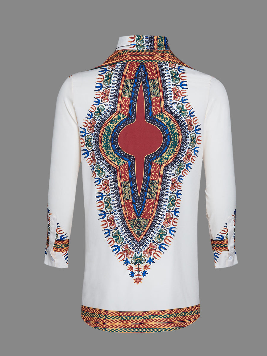TACOHEAL New Turndown Collar Ethnic Printed Long Sleeve Men's Shirt