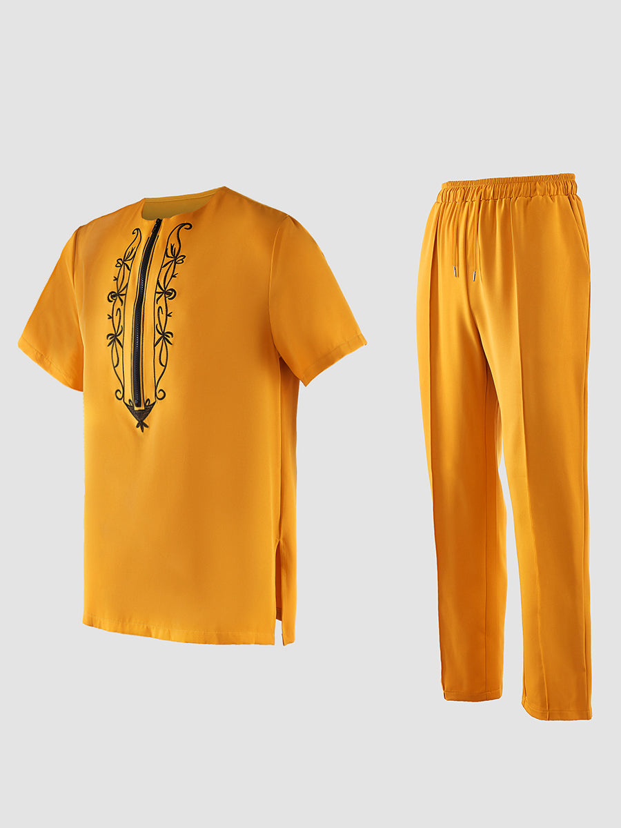 TACOHEAL African Embroidery Short Sleeve Pants Set For Men