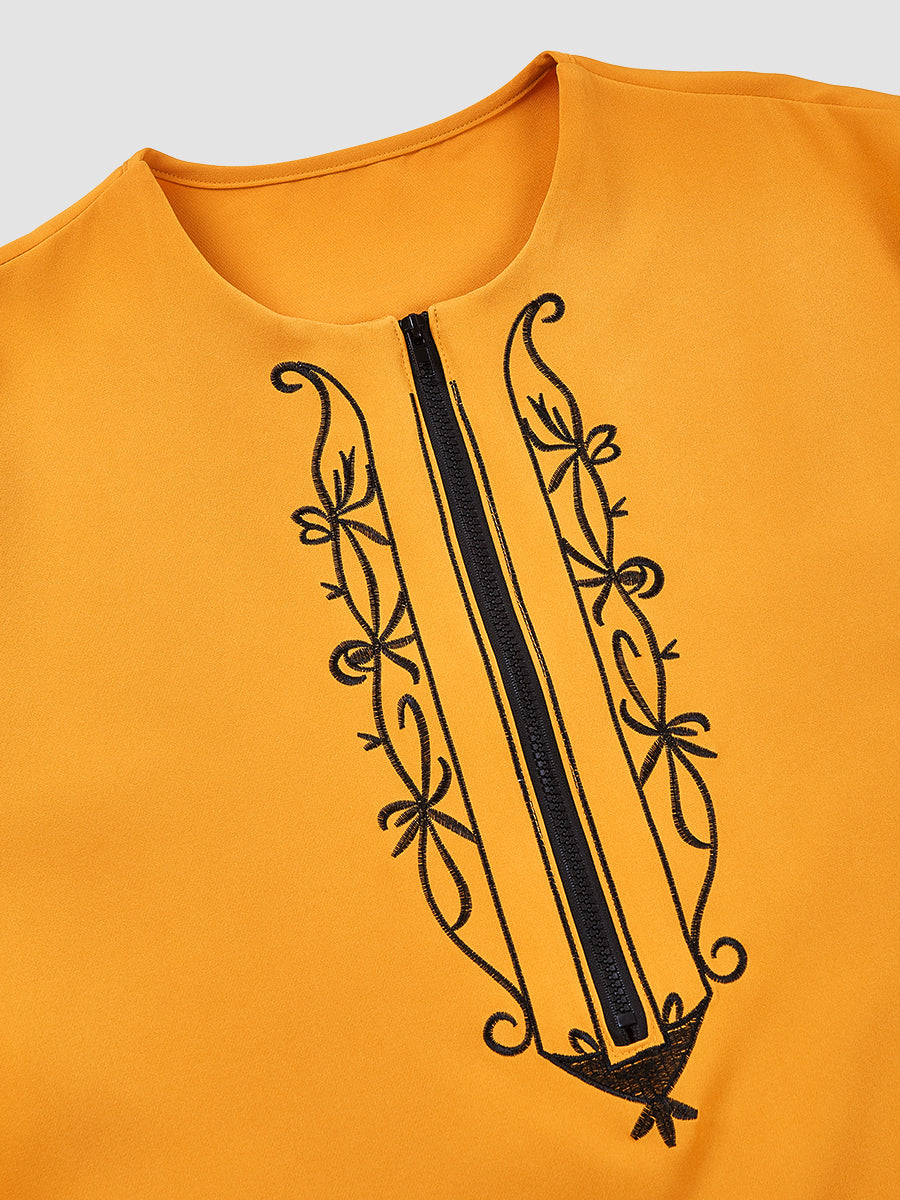 1. Stylish Design: African embroidery and zioper create a standout look.