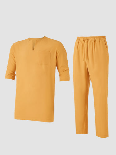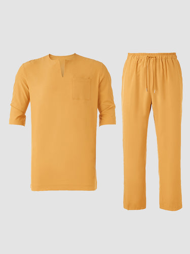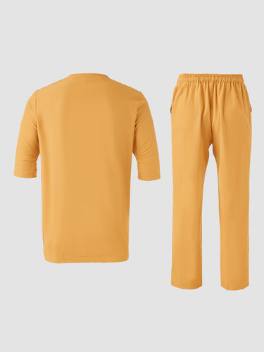Lässiges Herren-Set mit Rundhalsausschnitt und schlichtem Knopf in Schwarz