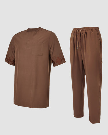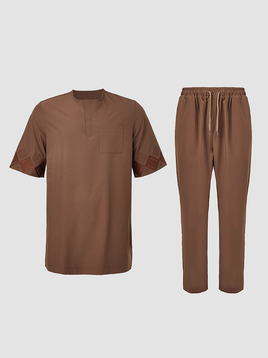 Entfesseln Sie Ihre innere Stilikone mit unserem lässigen Rundhals-Set mit schwarzen, schlichten Knöpfen für Männer. Mit seinem einzigartigen und trendigen Design heben Sie sich von der Masse ab. Dieses Set ist bequem und mühelos cool und eignet sich perfekt für jeden lässigen Anlass. Machen Sie sich bereit, ein Statement abzugeben!