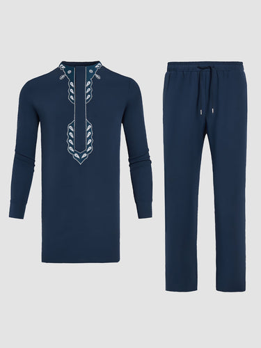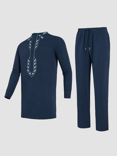 Afrikanisches Herrenhemd mit ethnischer Stickerei, Hemd und Hose