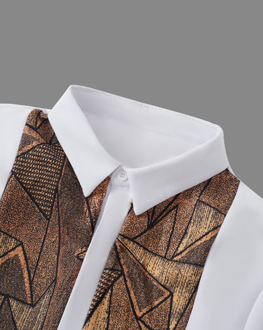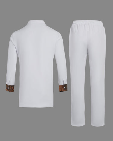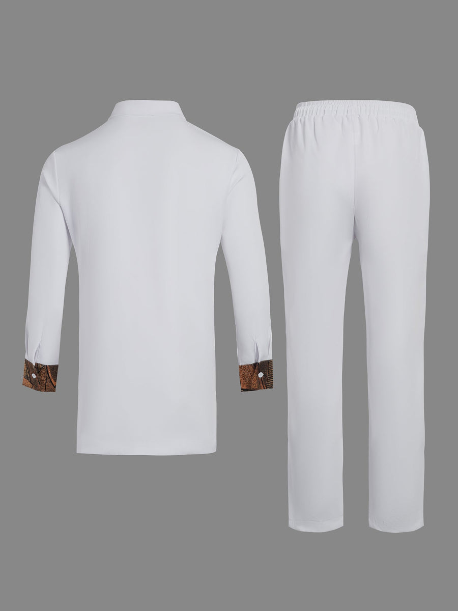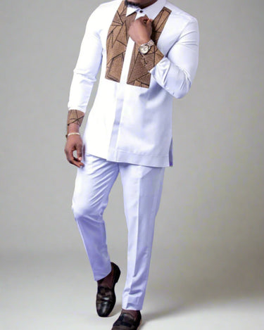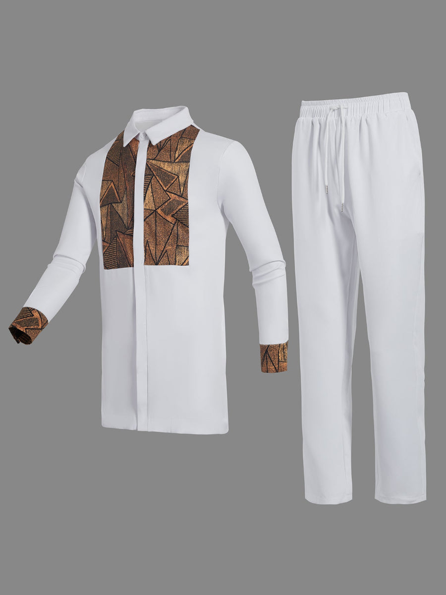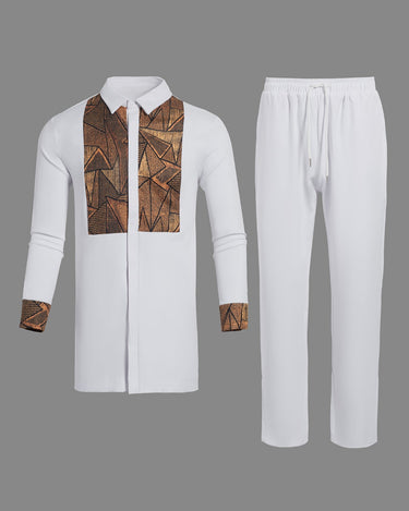 Afrikanisches Umlegekragen-Set mit digitalem Aufdruck in Weiß für Herren